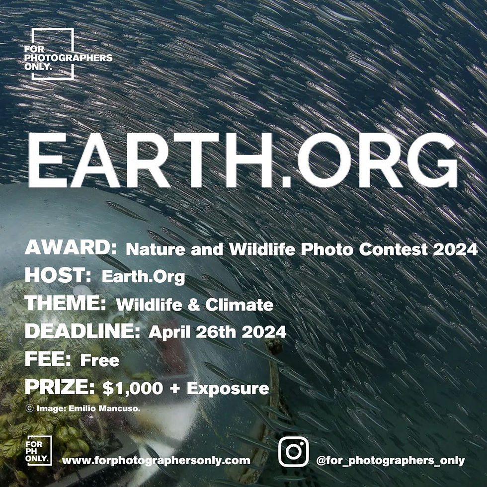 The 2024 Prizes include US$500 for the Winner of the Earth.Org "Overall Best Environmental Photo" 2023 and US$250 each for the Winners of the two sub-categories "Wildlife in Peril" 2023 and "Climate Action" 2023. Submissions must be received by April 26th, 2024. All Winners will have the opportunity to take over the Earth.Org Instagram page for a week, be interviewed for articles on Earth.Org, and showcase their work on our website or in our articles. Winners will be announced on our website and notified via email by June 23rd, 2024.